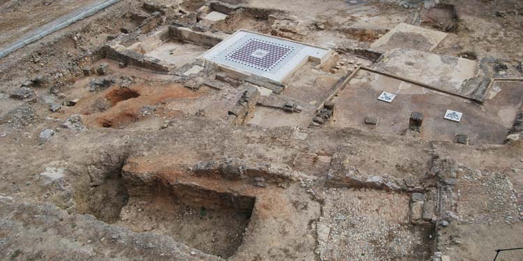 En el centro del recinto se encontró un gran mosaico policromo, en cuyo medallón central se representa una divinidad marina. La fechó en el siglo III y permanece sellado para su conservación. A partir de los restos que se encontraron se llegó a la conclusión de que existiría también un alfar de “Terra Sigilata” en la misma zona.
